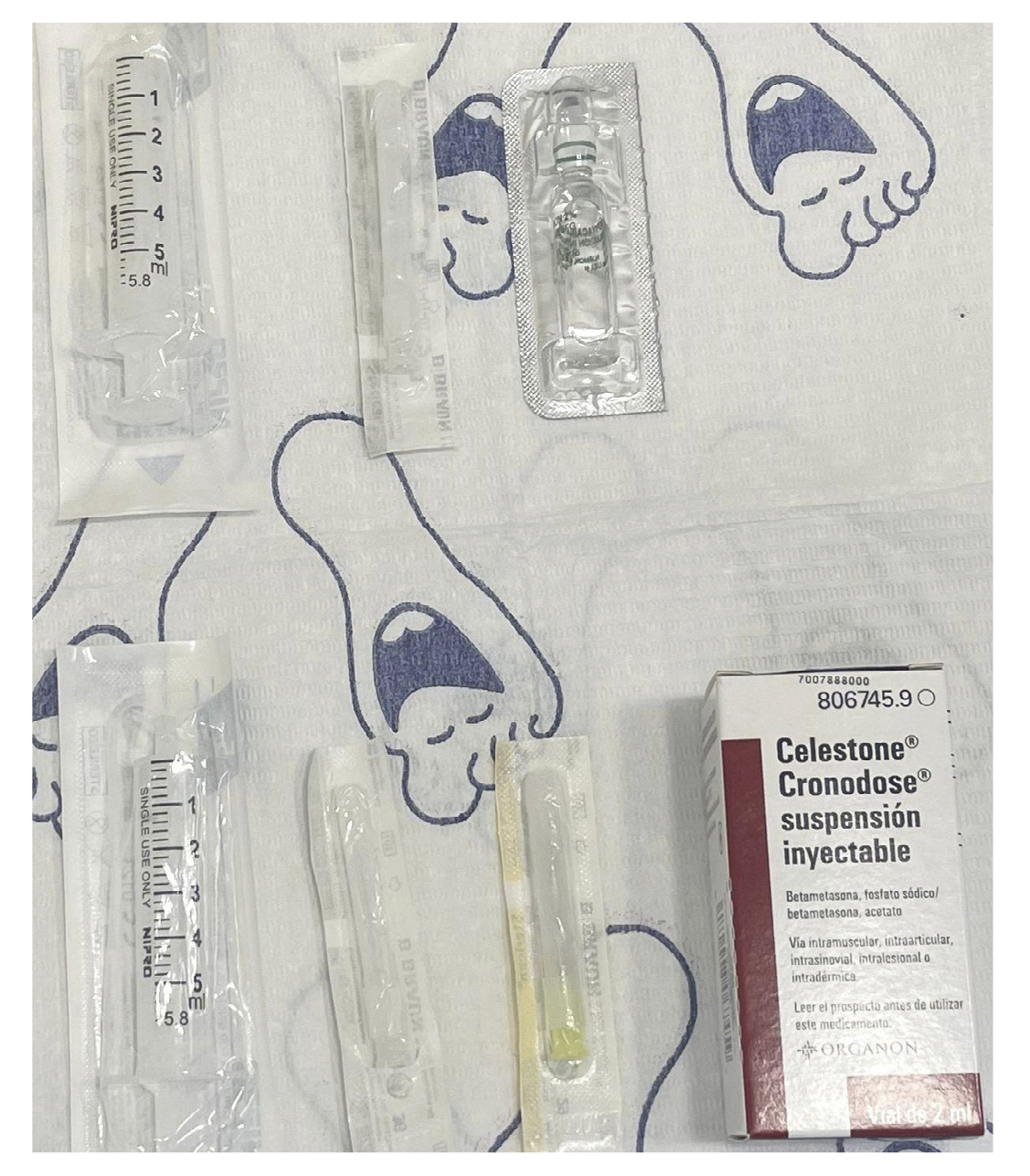 Figure 3. Visual representation of materials used in the corticosteroid injection procedure.