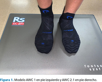 Sin embargo, los valores entre el pre y post de los pies que llevaron el calcetín AWC 2.1 (estando en el mismo sujeto) no se vieron alterados tras la actividad, quedando en valores similares al patrón previo. Esta diferencia podría deberse directamente con la separación de sus ondas plantares, ya que en el calcetín AWC 1 sus ondas se separan 5 mm, por los 3 mm del AWC 2.1. Esto hace que el calcetín AWC 2.1 sea más acolchado y tenga ese efecto amortiguador positivo. Este efecto vendría dado porque la estructura le confiere menos capacidad de extensión y deformación, manteniendo así las presiones plantares inamovibles. En diferentes investigaciones se demuestra que, a través del uso de calcetines acolchados, se reduce la presión plantar máxima. Veves y cols.13 estudiaron la disminución de las presiones plantares con calcetines acolchados en retropié y en antepié, concluyendo que se redujo la presión plantar máxima el 26 %, en comparación con pies descalzos.