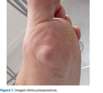 En el presente caso se utilizó una plasta en “S” para su extracción en vez de una excisión clásica fusiforme de la misma. Las ventajas de esta técnica incluyen una ampliación del campo de visión del cirujano, facilita la disección de estructuras profundas, permitiendo una resección tumoral más segura, y facilita el cierre de la misma reduciendo tensión sobre la cicatriz creada. Esta plastia ya ha sido descrita para el abordaje de diversas lesiones en el pie17. El caso presentado curó satisfactoriamente a las 3 semanas por medio de esta técnica con un resultado estético favorable.