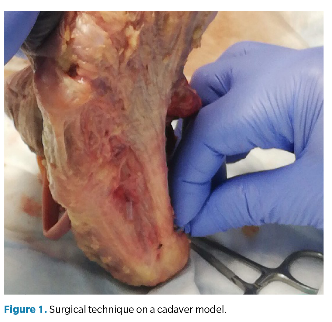 Prior to performing the surgical technique, it was performed on a cadaveric model (Figure 1).