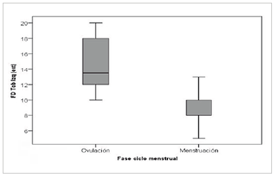 Figura 4. FD tobillo derecho (rodilla extendida) en las fases de ovulación y menstruación.