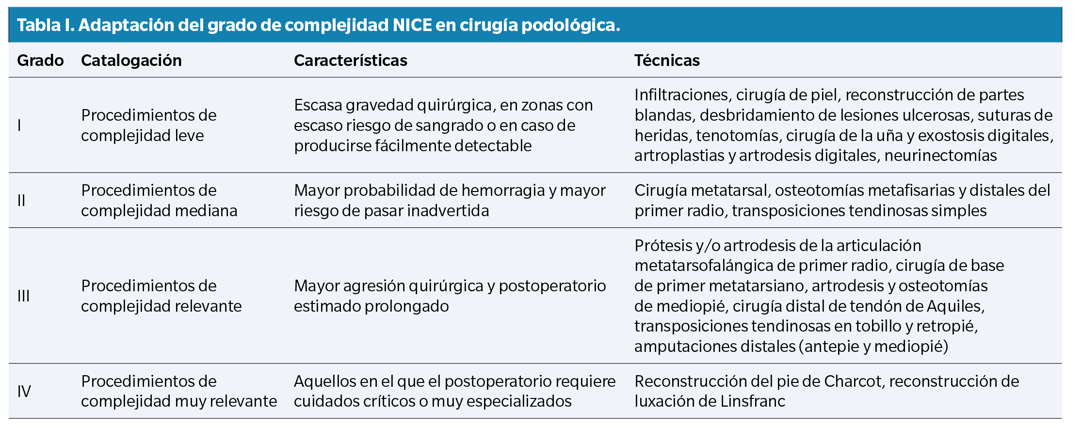 Propuesta de una clasificación de las técnicas de cirugía podológica según su grado de complejidad