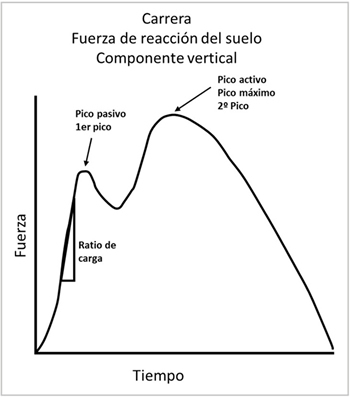 A diferencia del consenso existente para la marcha, el FSP durante la carrera genera debate y continúa siendo foco de estudio. Dentro de las variables biomecánicas relacionadas con el FSP y la fase de contacto inicial que se han investigado para revelar los mecanismos subyacentes de las RRI, la magnitud del impacto y la exposición repetida a elevadas cargas de impacto destacan entre las más relevantes10. Además, un estudio prospectivo que analizó las fuerzas de reacción contra el suelo durante la carrera18 encontró que la ratio de carga de la fuerza vertical que desarrollamos durante el impacto inicial (esto es, la tasa de fuerza vertical por unidad de tiempo, o si se prefiere, la potencia del impacto que sufrimos) fue el único predictor de todos los tipos de RRI en corredores novatos masculinos. Particularmente, se informó de que una ratio de carga de fuerza de impacto aumentada contribuye al desarrollo de fracturas por estrés en las extremidades inferiores(19,20), fascitis plantares(21) y otros tipos de RRI(10,19), incluidas algunas de las más comunes como el dolor patelofemoral(22,23). En este sentido, varias investigaciones indican que algunos estilos de FSP, como el impacto de talón (RFS), pueden resultar en magnitudes de impacto mayores(12,24,25) y ratios de fuerza vertical aumentados(12,26,27), generando una mayor carga en la articulación de la rodilla(11,12) en comparación con un FSP de antepié o de mediopié.