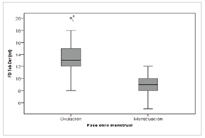 Figura 6. Extensión 1.º AMTF derecha en fases de ovulación y menstruación.