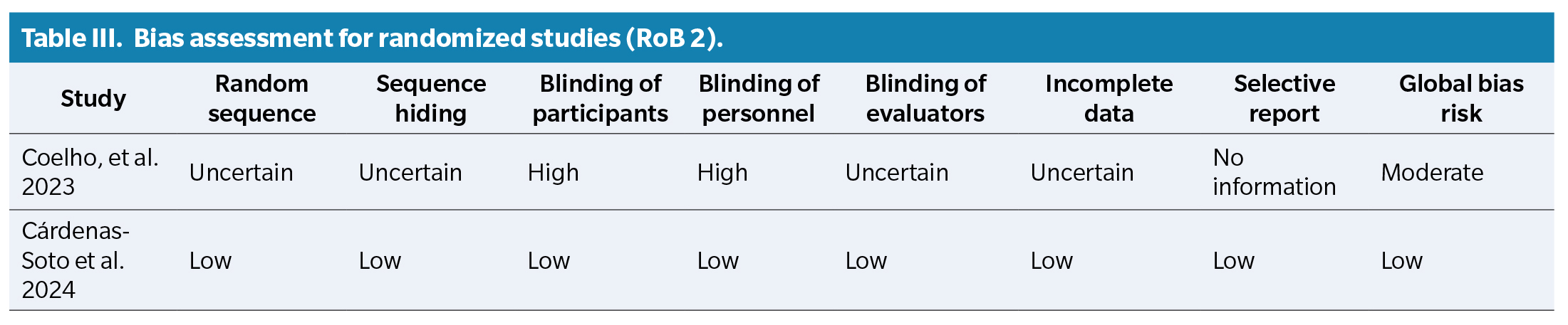 RoB 2 tool for randomized controlled trials.