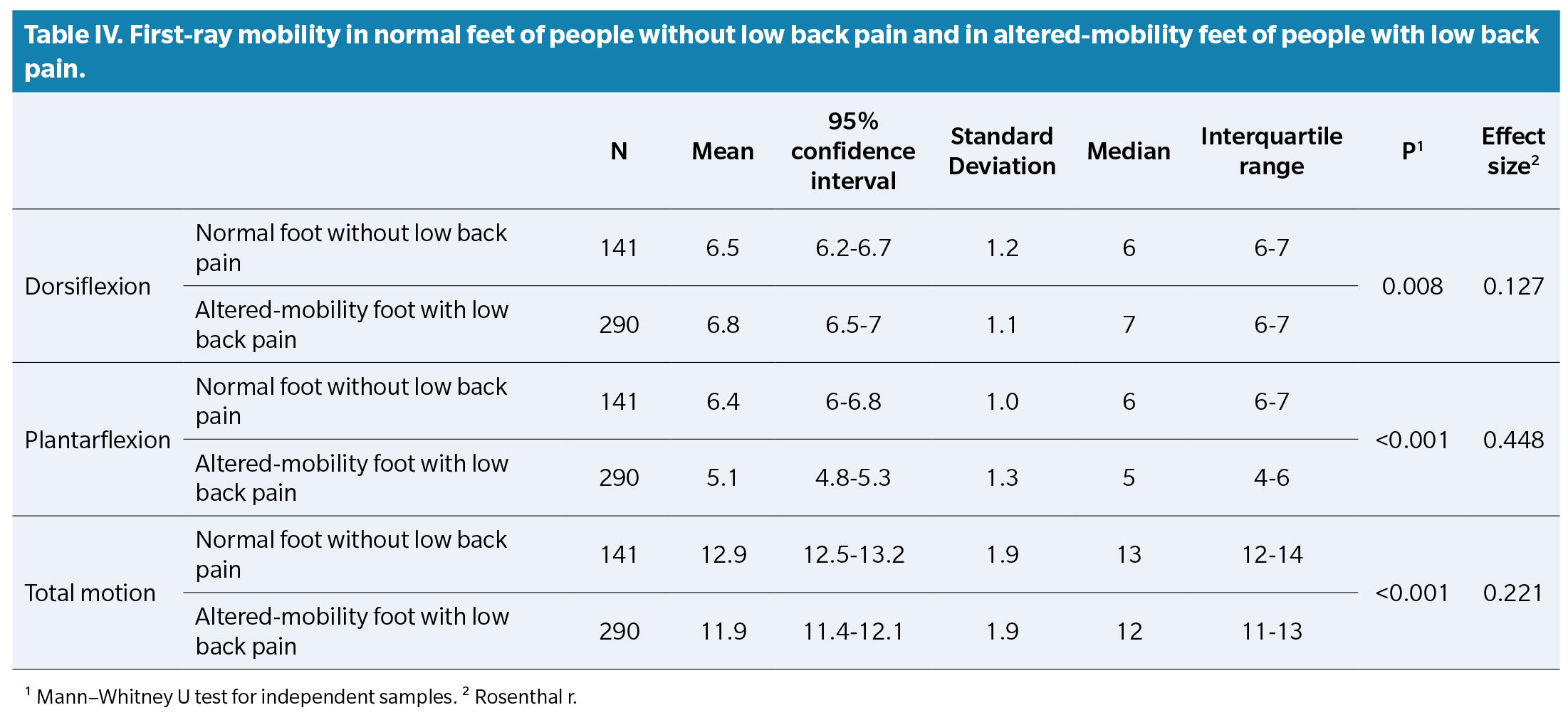 Table 2 shows differences in first-ray mobility variables between normal and altered-mobility feet.