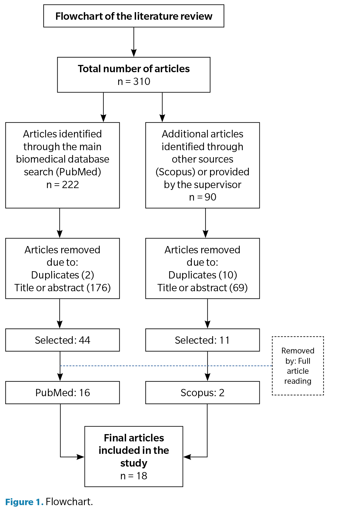 For the assessment of the results, a total of 18 articles were selected. To represent that the results were obtained in a more schematic way, a flowchart was developed (Figure 1).