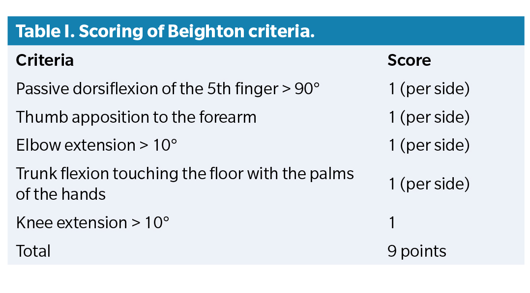 11. Engelbert RH, Rombaut L. Clinimetrics: assessment of generalised joint hypermobility: The Beighton score. J Physiother. 2022;68(3):208. DOI: 10.1016/j.jphys.2022.02.004.