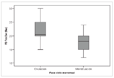Figura 4. FD tobillo derecho (rodilla extendida) en las fases de ovulación y menstruación.
