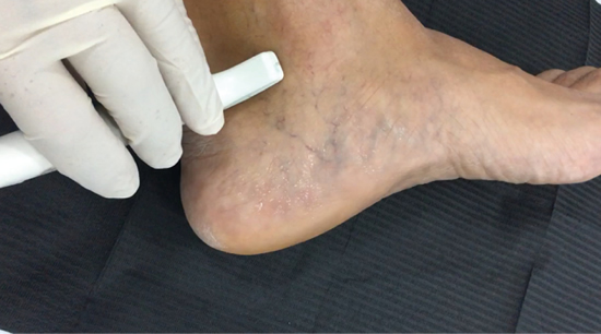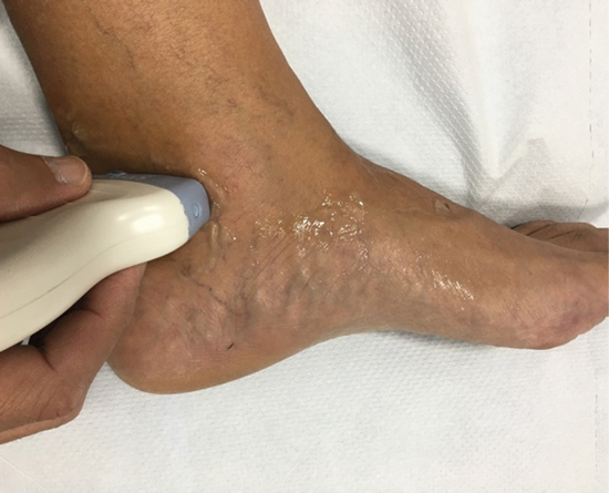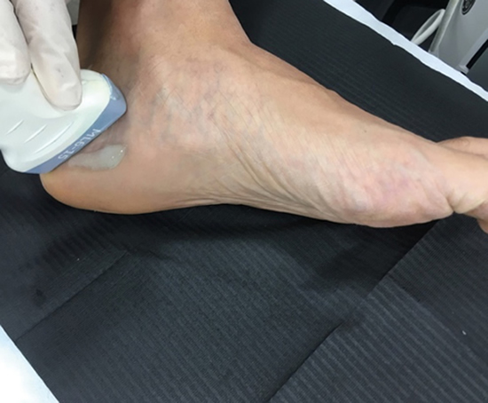 El uso de la ecografía tiene una efectividad del casi el 100 % como herramienta en la identificación del nervio tibial y sus ramas4. El nervio tibial, en el tercio distal de la pierna, se hace superficial por el túnel tibiotalar superior en su camino hacia la planta el pie3.