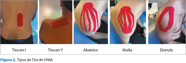 El VNM es una terapia con gran versatilidad, comodidad, eficacia y facilidad de uso1,5, los mecanismos propuestos por los que funciona el VNM según Kenzo Kase, el creador de la cinta Kinesio incluyen: la corrección de la función muscular y el fortalecimiento los músculos debilitados, la mejora de la circulación sanguínea y linfática, la disminución del dolor a través de la supresión neurológica, reposicionamiento de las articulaciones subluxadas, ayudando a devolver la función de la fascia y el músculo y por último el aumento de la propiocepción a través de una mayor estimulación de los mecanorreceptores cutáneos3. Según la finalidad del tratamiento se desarrollan diferentes técnicas de aplicación y gracias a la durabilidad del vendaje el efecto se puede mantener durante 4 o 5 días. Entre las técnicas se encuentran: correctivas, musculares, de liberación de espacio, linfáticas, etc. En la bibliografía ya existen diferentes guías explicando este tipo de técnicas6,7 que se diferencian entre sí en la tensión aplicada durante su colocación, el sentido de la aplicación y el posicionamiento del paciente. Para poder realizar una explicación exhaustiva de estas, primero se dará a conocer una serie de principios y pautas básicas para su correcta aplicación y mejor entendimiento de estas.