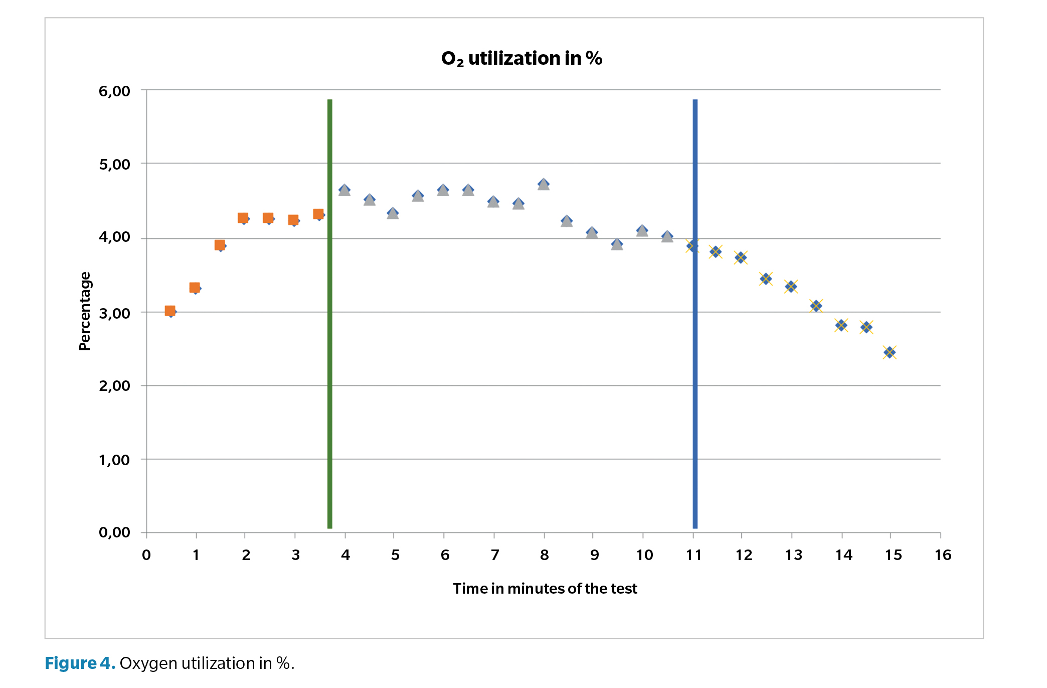 The final physiological concept is %O2 during the aerobic-anaerobic transition, considered good if > 3.2 %, as indicated in our research(4). However, this must be combined with the duration of the transition phase.