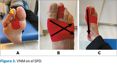 El VNM podría ser una buena técnica para mejorar el SDP de las articulaciones metatarsofalángicas. Existe poca bibliografía al respecto y el objetivo que se pretende conseguir es la correcta posición de la articulación y la reducción del dolor7-9.