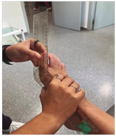 Figura 3. Medición de la 1.ª articulación metatarsofalángica.