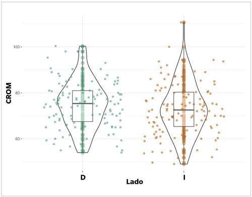 Figura 2. Diferencia del rango de movilidad de cadera (CROM) por cada lado.